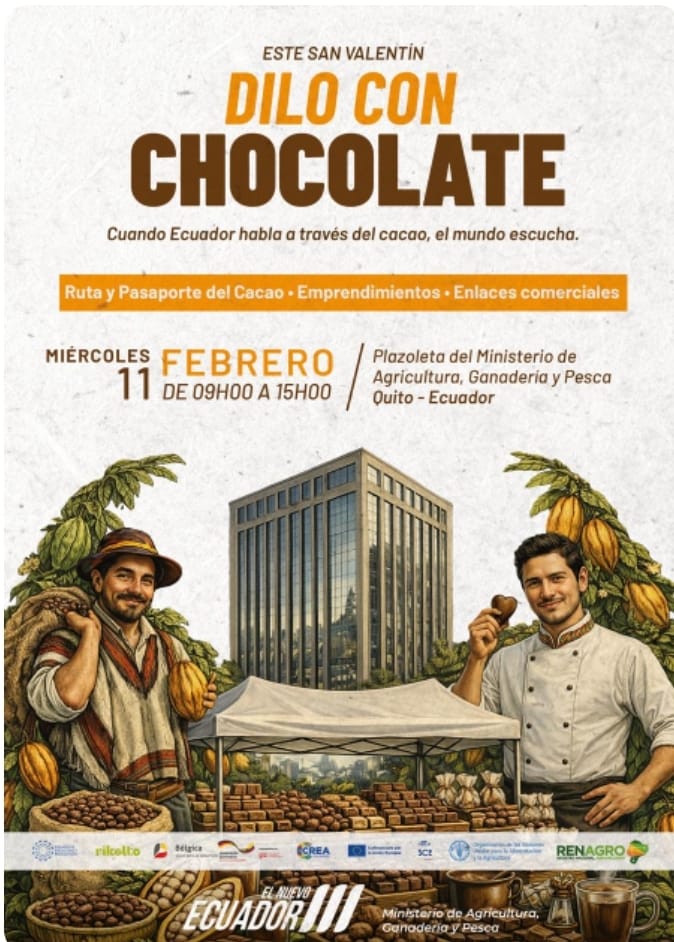 Durante la jornada se llevará a cabo la Ruta y el Pasaporte del Cacao, una experiencia que reunirá a destacados emprendimientos, propuestas innovadoras y enlaces comerciales vinculados a la cadena productiva del cacao. Este espacio permitirá conocer de cerca la riqueza, el valor cultural y el potencial económico de uno de los productos emblemáticos del país.