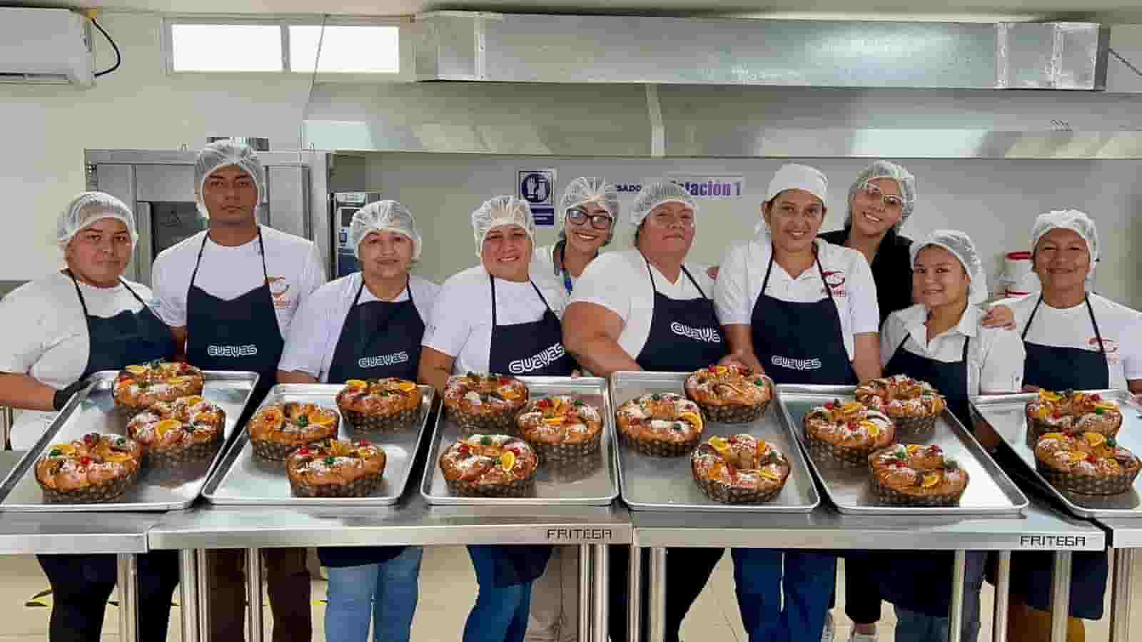 Bajo el liderazgo de la prefecta Marcela Aguiñaga, 107 mujeres participan en la elaboración de la “Rosca de Reyes del Alma”, iniciativa de la panadería comunitaria de Monte Sinaí, en el noroeste de Guayaquil, donde la Prefectura brinda atención integral a familias y promueve oportunidades de desarrollo.